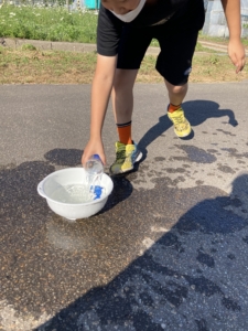 みんなで順番に水を入れていってイルカを先に外に逃がせたチームが勝ちです🐬