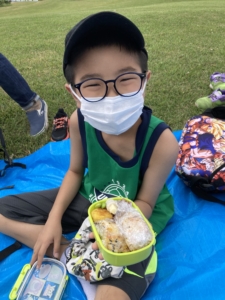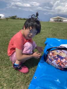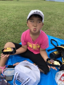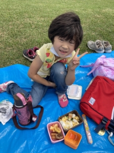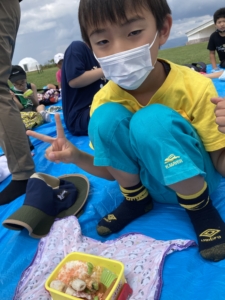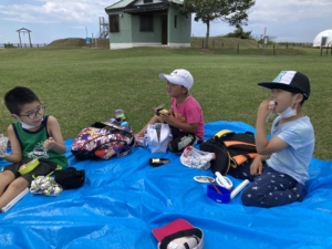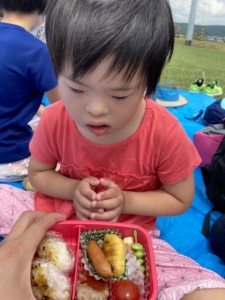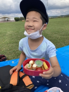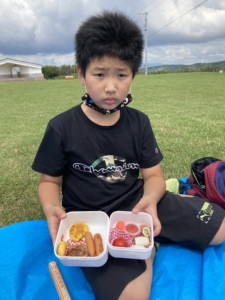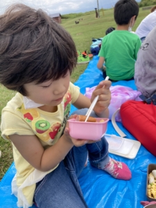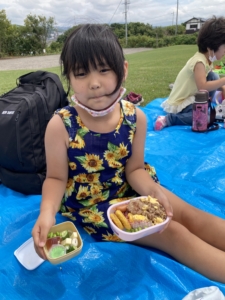 広い野原でみんなでおいしくお弁当を食べました!🌞
