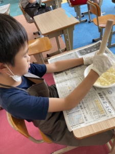 たまみずきでは何度かいももちづくりをしたことがあるので慣れた手つきで作業する子が