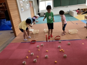 指定された線から出てはいけないというルールもしっかり守り、身体をなるべく遠くへ伸ばして頑張る子どもたちでした(*’▽’)