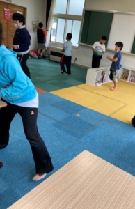 ジャンプをしながら狙って投げる動作は難しいことですが、子どもたちはとっても前向きに挑んでいます💪