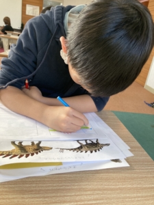 ページの上半分にイラストを描き、下半分には項目がありパソコンで調べて記入していきます。