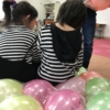 休憩をはさんだ後は、ボール運びゲーム!!はいはいや、カエル跳び、四足歩行の色々な動きをしながら1つずつボールを自分の陣地のかごへ運ぶゲームをしました。子どもも職員もなかなかの運動不足・・・息をきらしながらも楽しく身体を動かしました(*^-^*)