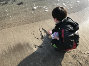 また、天気も良かったので江差町の公園やかもめ島へ行きました。かもめ島では、きれいな貝殻を集めたり、みずきりをして遊んだりと自然を満喫♪