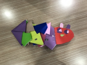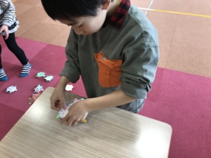 後半には、輪投げゲームをしたり、折り紙で”はらぺこあおむし”を作りました。