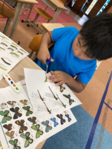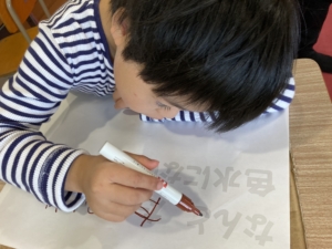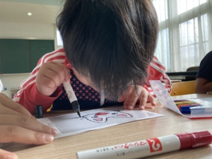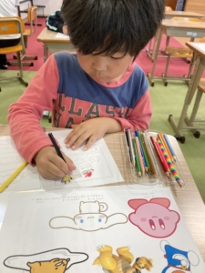 好きなキャラクターや昆虫などの写真やイラストをなぞって、プラバンに写していきます✍細かい線まで集中して丁寧に描き写していました✨「もっとやりたい!」と意欲的に何枚も作っていました。