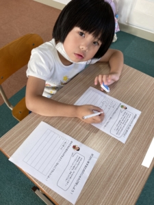 おつかいやお泊まりに行くためには何が必要か、準備物を考えました。買った商品を入れるためにはエコバッグが必要、商品を買うためにはお金が必要、お泊まりでは歯磨きセットも使うなど、たくさん考えて意見を出してくれました🙂必要なものを考えて準備したり、忘れ物をしないように確認したりするのは、おつかいやお泊まり以外にも毎日の学校準備などで役立ちますね💡