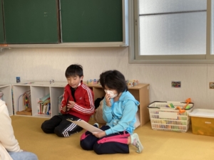 後半は文字探しゲームをしました。隠すチーム・見つけるチームに分かれます。ひらがなカードをお部屋の中に隠し、1人1枚カードを探します。見つけたカードがある単語になっているので、並び替えて単語を作るゲームです!みんな隠すのが上手でした😆