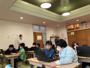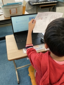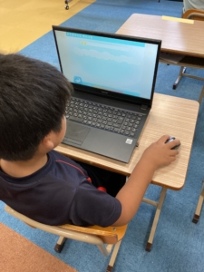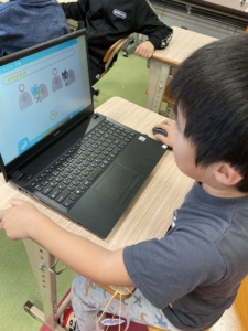 今回は指定のパソコンソフトの中であれば、自由に選択して進めることができました。ペアで1台のパソコンですが、きちんと順番を守りながら楽しく取り組んでいました😀マウス操作も上達しています🖱✨計算問題やしりとり問題など、時間いっぱい集中して解いていました!