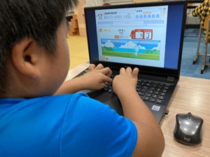 まずは使い方の説明をしてから、ホームポジションを覚えてもらうための練習をゲーム感覚で行いました💻