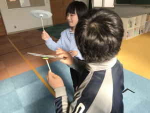 この日はまず皿回しを作り、誰が一番長く回すことができるかの大会をしました!