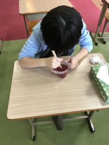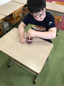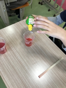 たまみずきに戻ってきてからは「色がかわるのは、、、?」という実験をしました。