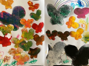 お部屋の壁に子どもたちの作品を飾り展覧会を行いました!😊