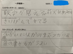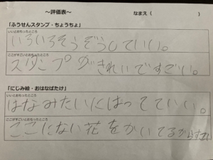 そしてみんなに審査員となってもらい各作品にコメントや1番いいと思う作品に花をつけてもらいました🌸