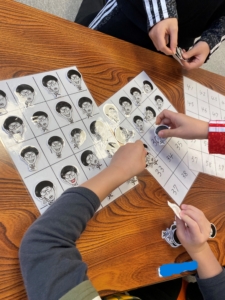 今回の活動は職員2人が前に出て順番に一文字づつ口パクをするので2人合わせて