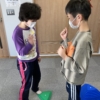 紙コップの中に隠したボールを目で追い、最終的にどのコップにボールが入っているのかを当てます。最初は3このコップで挑戦しました。みんな集中してよく見ており、正解していました👏✨次はコップを5こに増やします。コップが3こから5こになるとぐんと難易度も上がりますが、最後まで集中して取り組むことができていました!