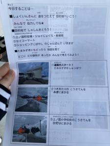 目的地までは車での移動で、子どもたちには道案内表を渡して道案内をしてもらいました🚙💨移動も楽しんでいて、道案内も頑張ってくれました👏「ここ来たことあるよ」等、目的地についての話題も出ていました。