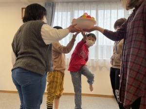 椅子取りゲームのルールで輪をとります!以前盛り上がったゲームだったため、もう一度行いましたが、今回も大盛り上がり!!優勝者には、みんな拍手をして称えました✨