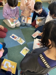 ビンゴのような表を見て、子どもたちに「あ」の1などと言ってもらいます。