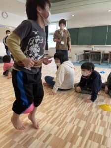 それを踏まえて、実際に遊びました。 力強く投げてしまった時などにはごめんねときちんと伝える姿が見られ、ルールを意識しているのがとても伝わってきました。