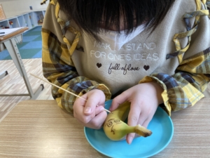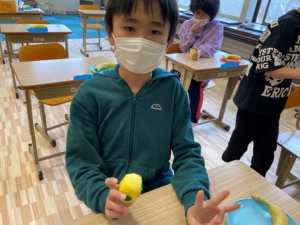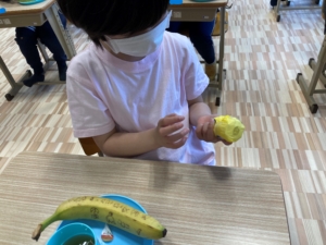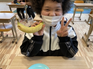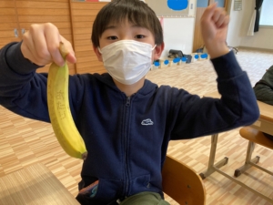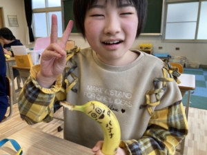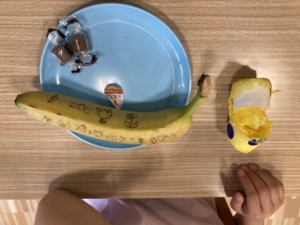 絵を描いたオリジナルバナナ🍌と卵に入っていたチョコをおやつで食べました🥄