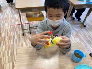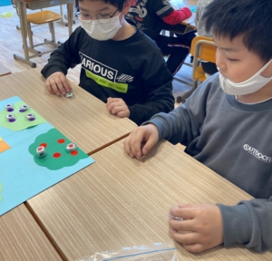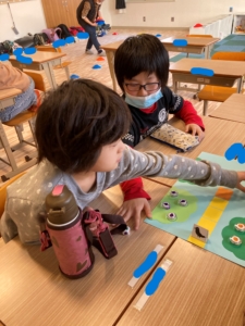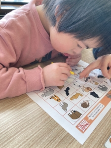 数字を書き入れる際、子どもたちは職員が好きそうな数字をイメージして書き入れていました😂