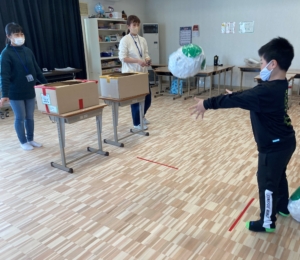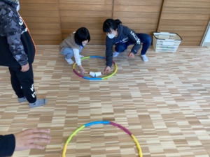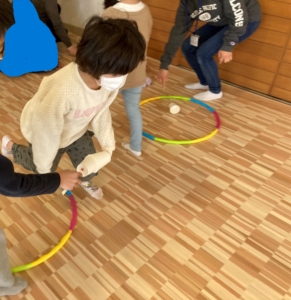 急ぎながらもボールが落ちないように慎重に取り組む子どもたちでした👌