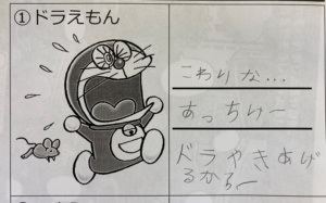 初回の活動は練習としてイラストを見てもらい、そのイラストに合うセリフを考えてもらいました!😊