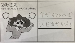 2問目はクレヨンしんちゃんのお母さんが怒っている様子のイラストです。