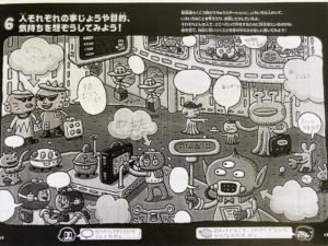 3問目はたくさんのキャラクターたちが会話している様子にセリフを書き入れてもらいました。