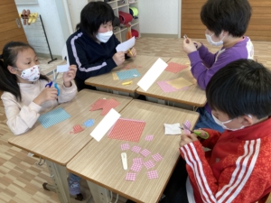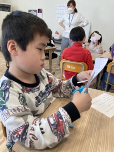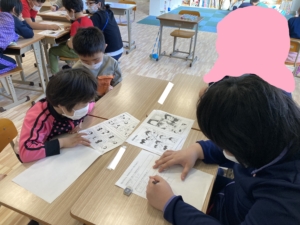 前回よりも少し難しい内容のスケッチブックシアターを見ました。内容は難しくなりましたが、仕掛けのあるスケッチブックにみんなは夢中になり、集中して見ていました。見た後は、プリントで見た内容についての問題に挑戦しました。集中して見ていたので、きちんと答えられていました✨