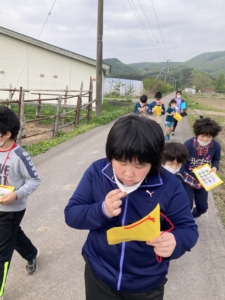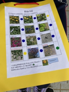 今回は外でチューリップやタンポポ、蟻などを探しに行きました。見つけたらカードにシールを貼ります。みんなカードのシールが全て埋まりました😀