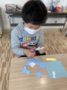 火曜日の活動テーマは「製作」です。ハサミを使ったり、お花紙でお花を作ったり、手先を使った製作を行っていきます。丁寧さにも意識しながら取り組んでいきたいと思います。