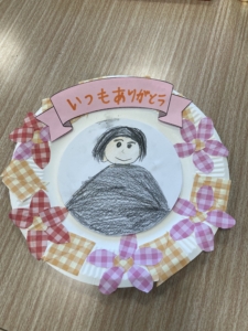 先週に引き続き、似顔絵を描いたり、お花紙のお花などで飾り付けをして、紙皿を使ったプレゼントの製作を行いました🎁