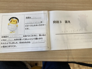 今回は5つの北海道のゆるキャラが紹介され、名前や好きなもの、特徴や性格、家族構成などの情報をよ~く聞いて、最後に出題される問題にチャレンジしました。例えば「このキャラクターの娘の名前はなんでしょう?」といった問題が出題されました。みんなの回答の早さには職員もびっくりでした!💡