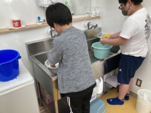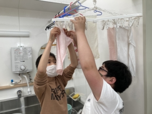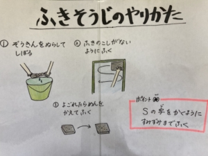 今回のお仕事体験は ①拭き掃除 ②雑巾を手洗い ③洗濯物干し の3つに取り組みました👕