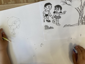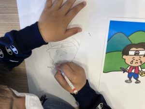 今回の活動はお手本の絵を見て大きな画用紙に書き写す作業をしました✎