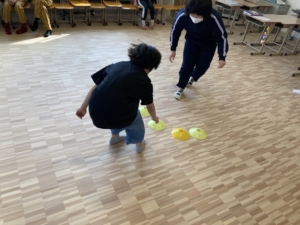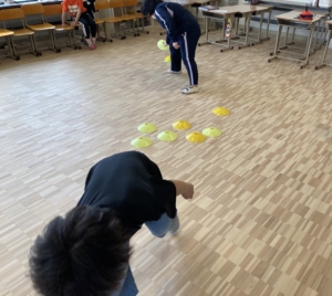 準備運動をしたあとに軽いウォーミングアップでコーンとりゲームをしました!