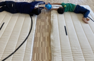 このボールを落とさないようにマットの端から端までゴロゴロと転がります。