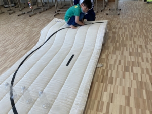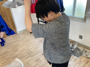 しわが残らないように何度も何度も伸ばすのを頑張る子どもたち!
