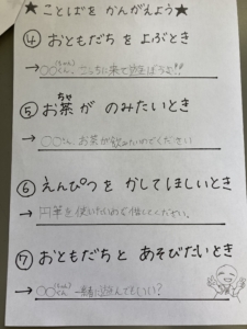 宿題を確認してほしいときなどの場面に合った適切な言葉遣いを考えました。