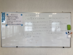 以前ルールを考えたときと同様に、「意見があるときは挙手、指名されてから発言する」「人の話を最後まで聞く」などの、話し合いのルールを確認してから始めました。