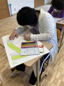 果てしない色塗りですが誰一人として弱音を吐かず一生懸命塗ってくれています✎