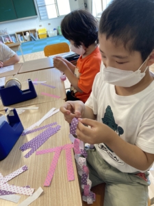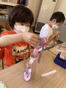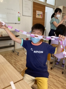 職員がお手伝いしなくても一人でどんどん、どんどん長い飾りにしていました🌟