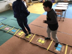 他にも、ラダーを使い”恐竜足跡じゃんけん”をしました。