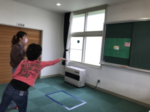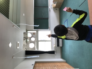 自分で作った紙飛行機を使って的を狙うゲームもし、なかなか的に飛ばせず悔しんでいるなか・・・