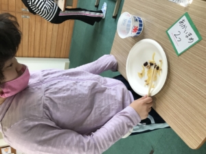 ”豆つかみゲーム”をしました。