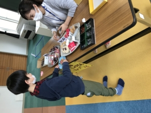 自分で好きなおやつを選び、お金(仮)を支払って買います☆