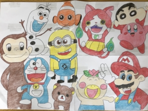 自分で吹き出しを付け足してみたり、色をつけたりと工夫して自分だけの物語を作りました(^^)/