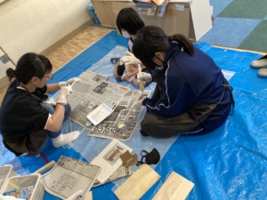 その後、組み立てグループと色塗りグループに分かれて作業を行いました。